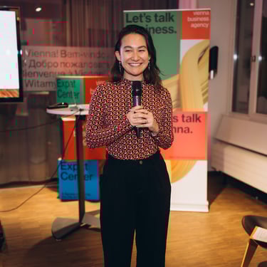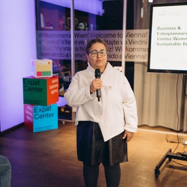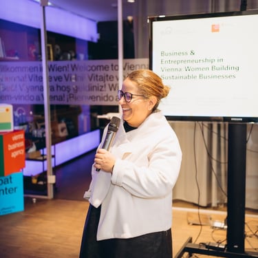 The event opened with welcoming remarks from Tülay Tuncel, Expert for Founders and Startups at the Vienna Business Agency, who spoke on behalf of the Vienna Business Agency. In her opening address, she highlighted the importance of supporting women and professionals with an international background who are interested in establishing businesses in Vienna, emphasizing the role of the agency in helping founders navigate the Austrian business ecosystem and access advisory services, funding programs, and startup support initiatives.