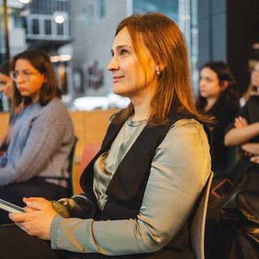 Following the keynote, Olena Bekreniova and Olga Olefirova, сo-founders of EUCFI, welcomed the audience and reflected on the program’s evolution over three years. They emphasised the importance of professional integration, community support and the courageous choices each participant made when joining the HUB.