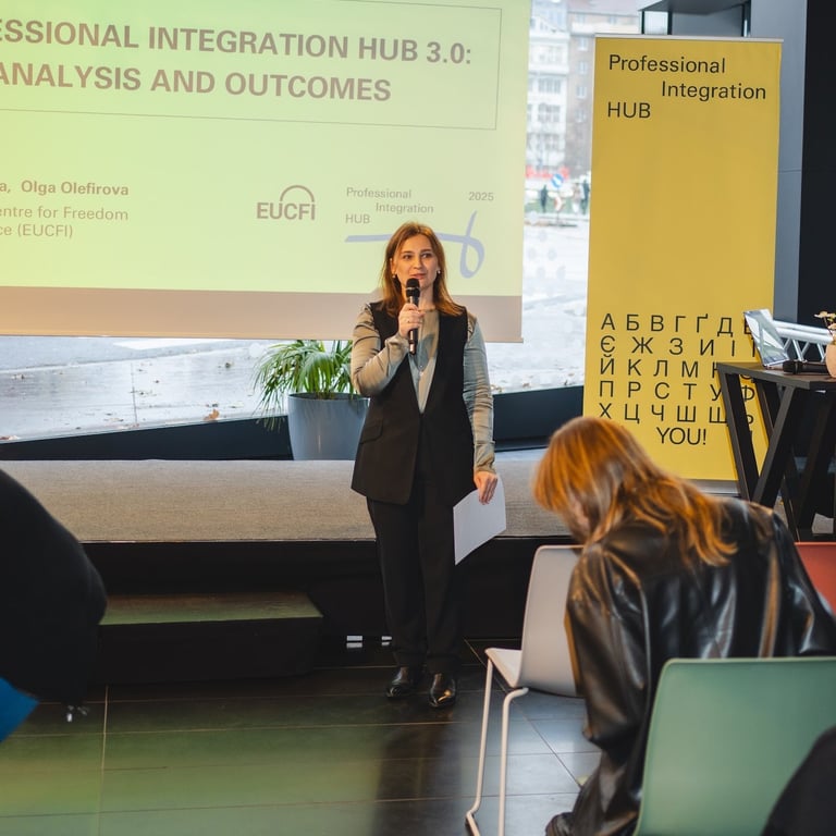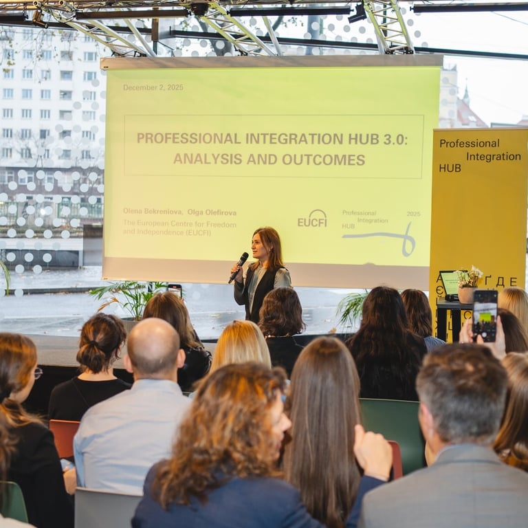 The event marked the completion of all three Professional Integration HUB program rounds implemented between 2023 and 2025, initiated and generously supported by ERSTE Foundation and carried out under the leadership of the European Centre for Freedom and Independence (EUCFI).