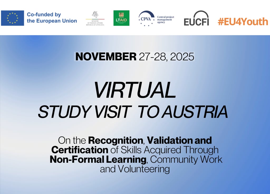 On 27–28 November 2025, a Virtual Study Visit to Austria will take place, dedicated to the topic of recognition, validation, and certification of skills acquired through non-formal learning, volunteering, and community work.
